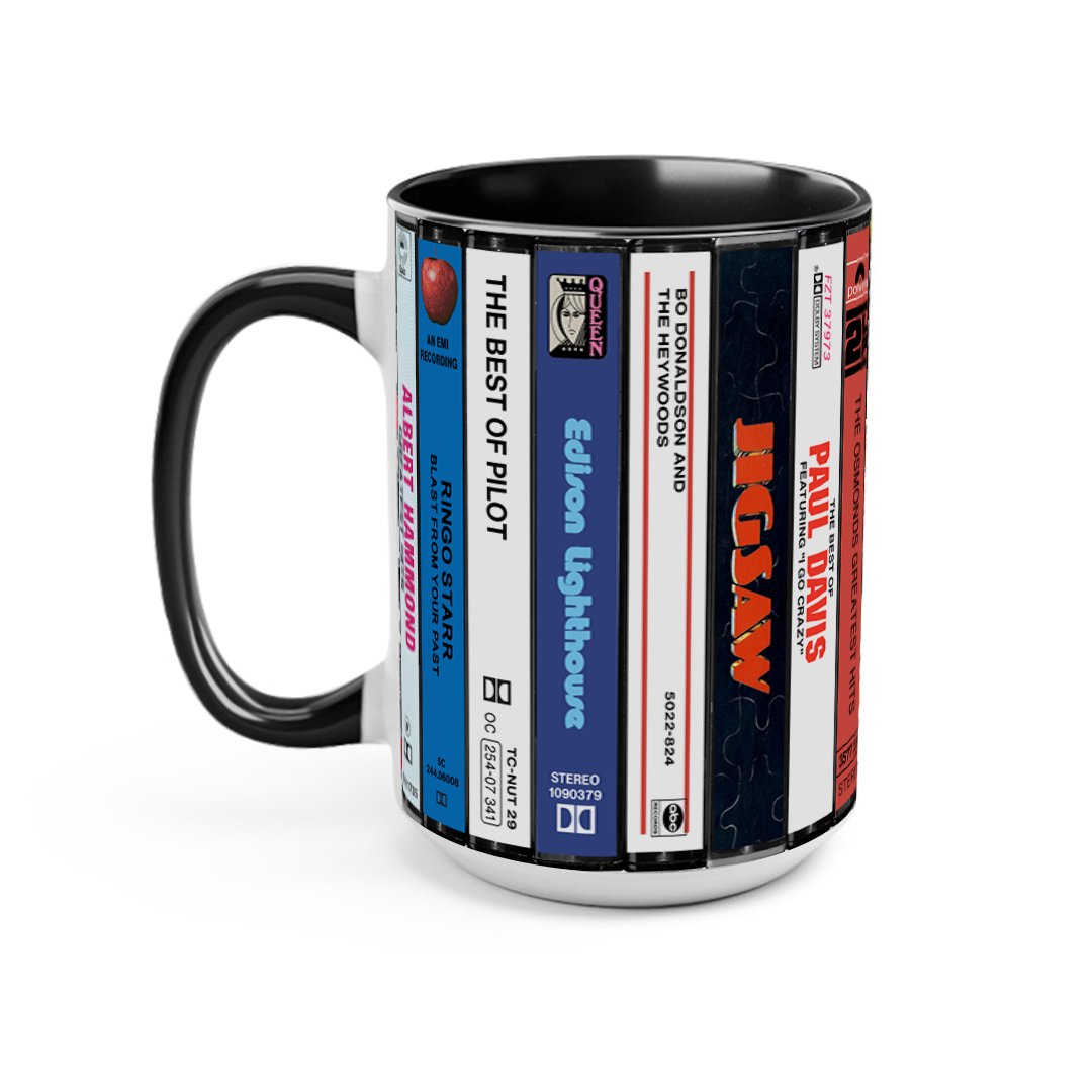 70s POP Albums Cassette Collection Retro Accent Edge-to-Edge Printed Mug