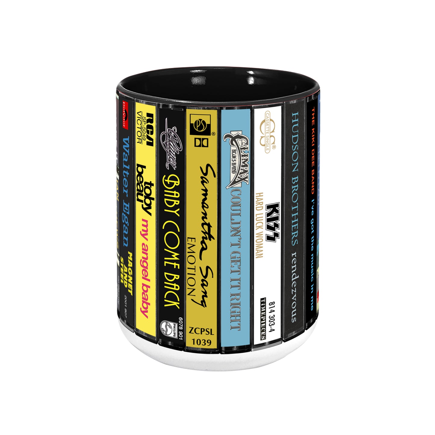 70s Pop Songs Albums Cassette Collection Retro Accent Edge-to-Edge Printed Mug - Volume 5
