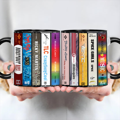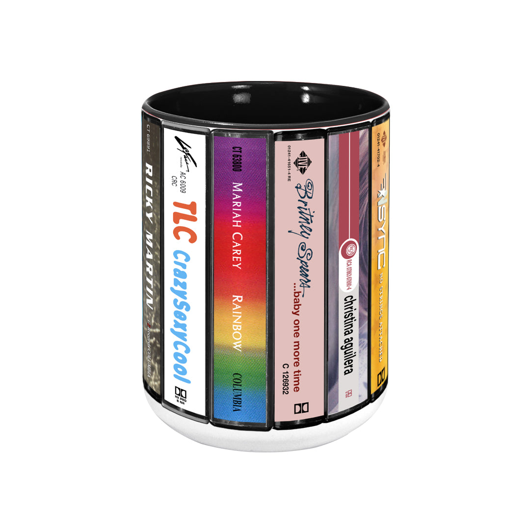 90's Pop Albums Cassette Collection Retro Accent Edge-to-Edge Printed Mug
