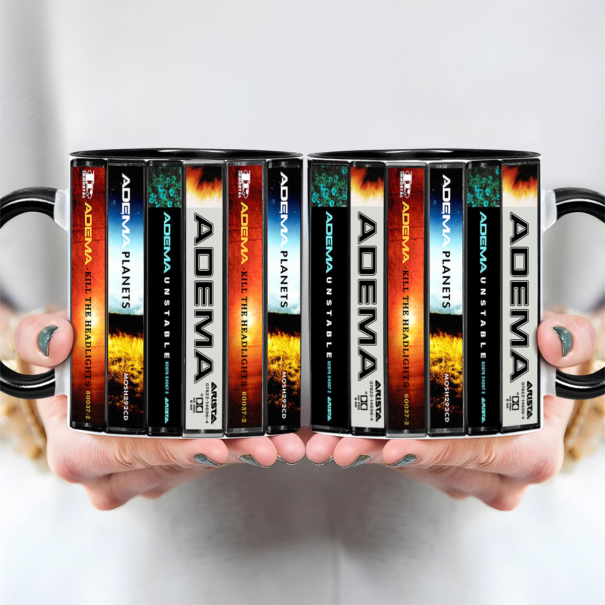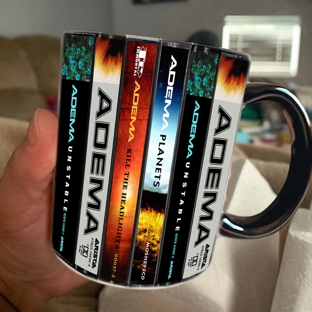 Discover the ultimate mug for Adema fans - our Adema Albums Cassette Collection Retro Accent Mug! Featuring a retro design with all your favorite Adema albums, this mug is a must-have for any collector or music lover.