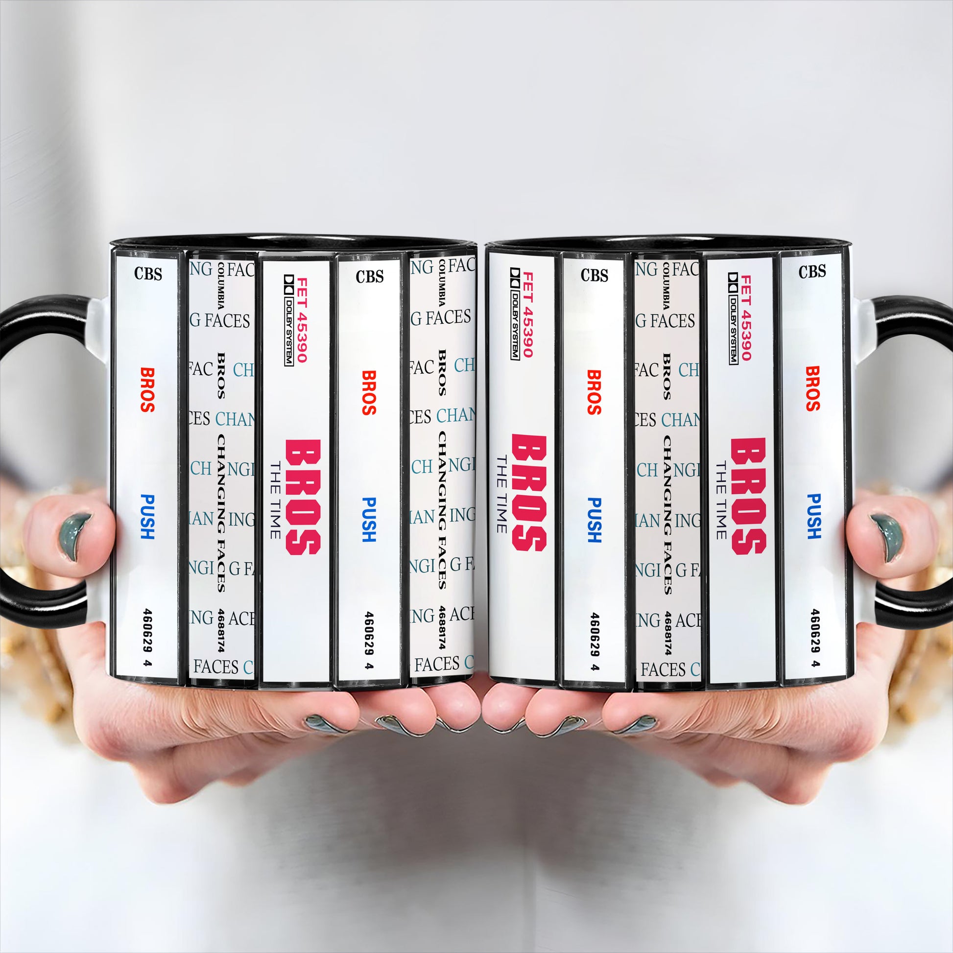 Bros Albums Cassette Collection Retro Accent Edge-to-Edge Printed Mug