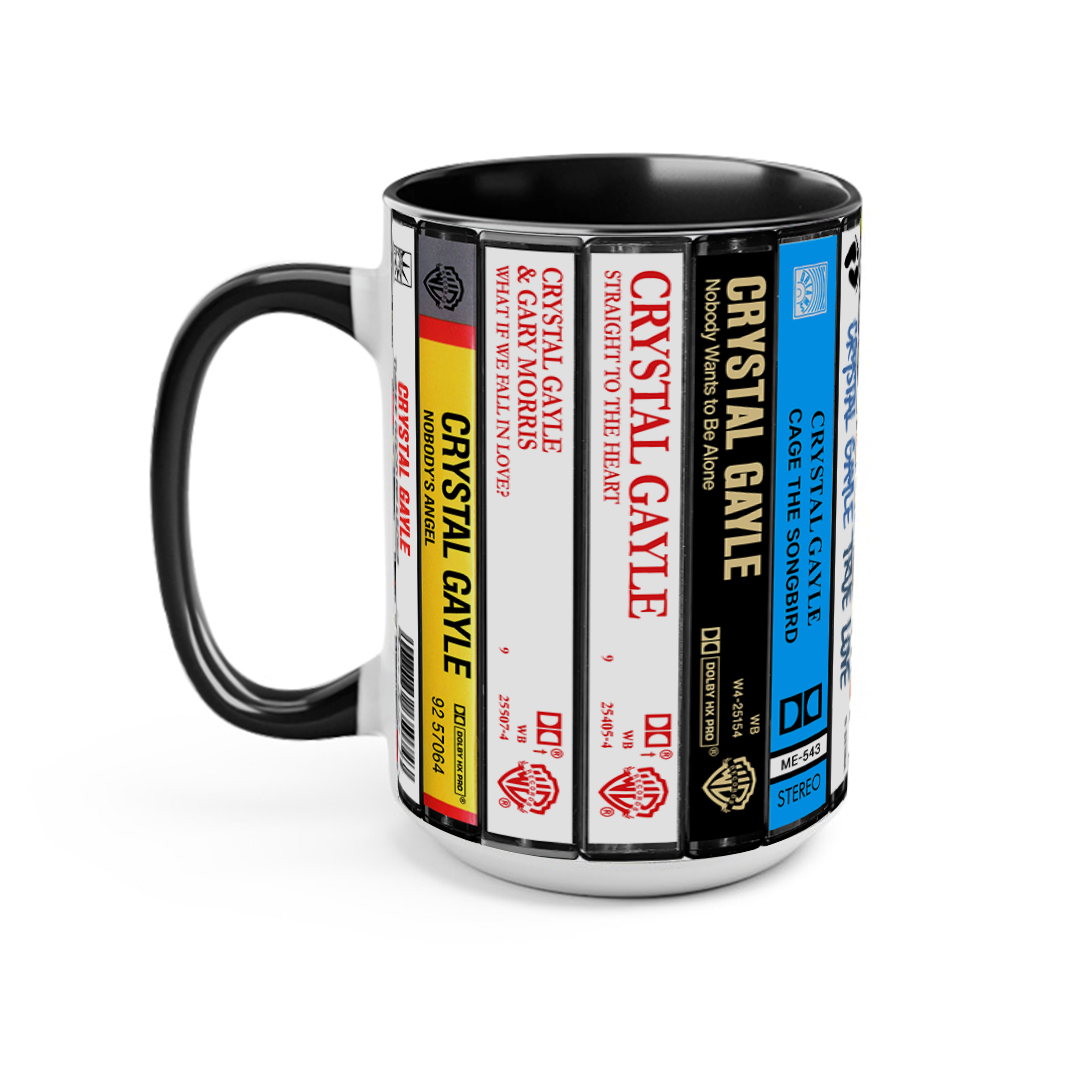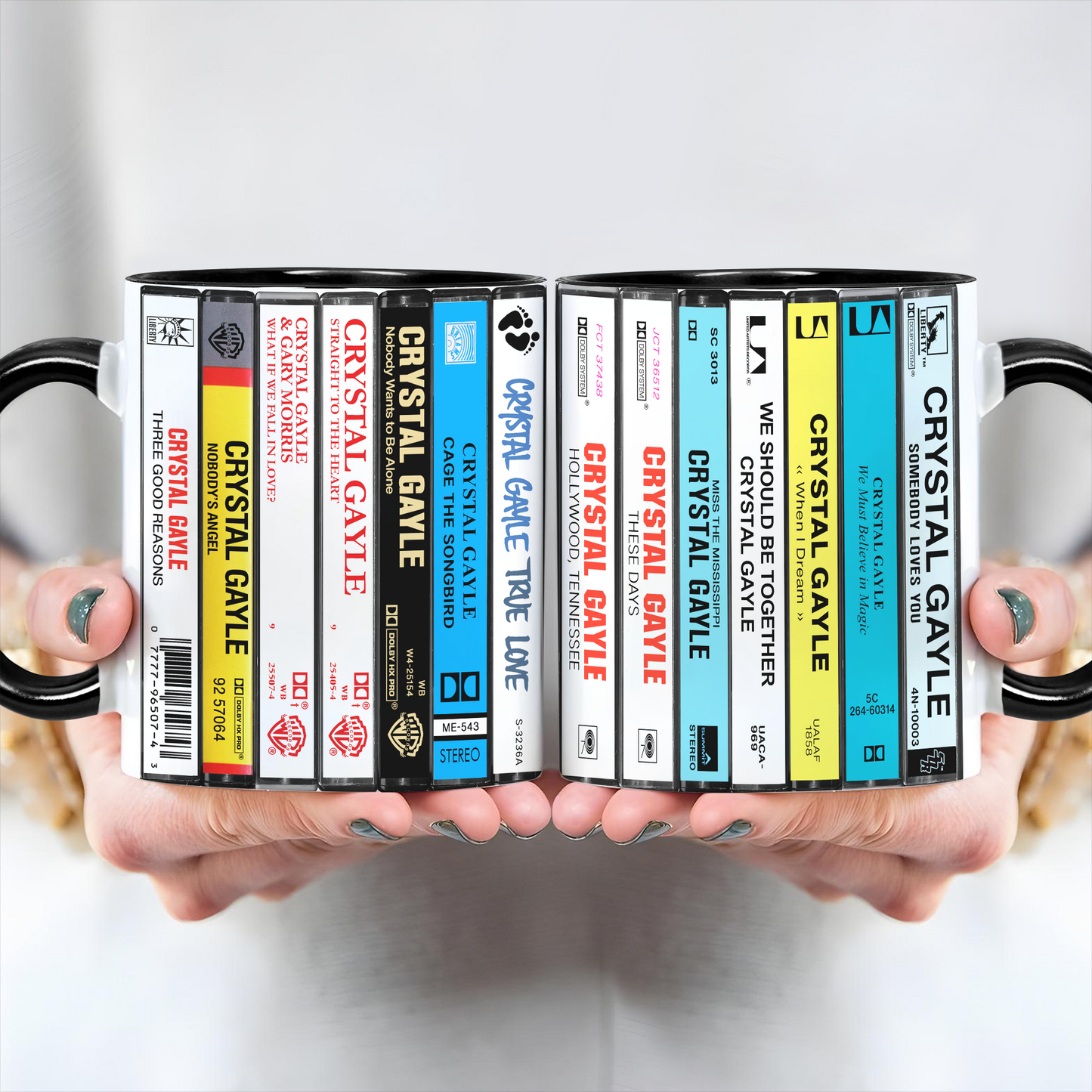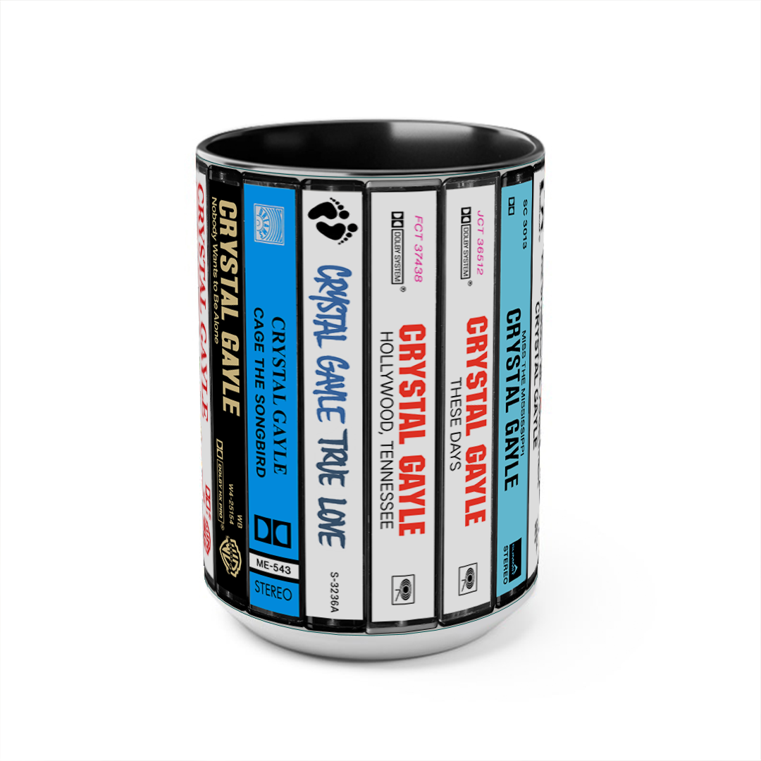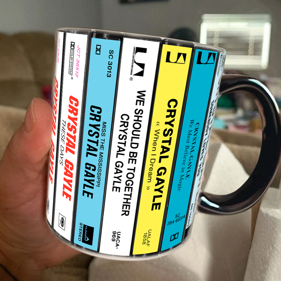 Crystal Gayle Albums Cassette Collection Retro Accent Edge-to-Edge Printed Mug