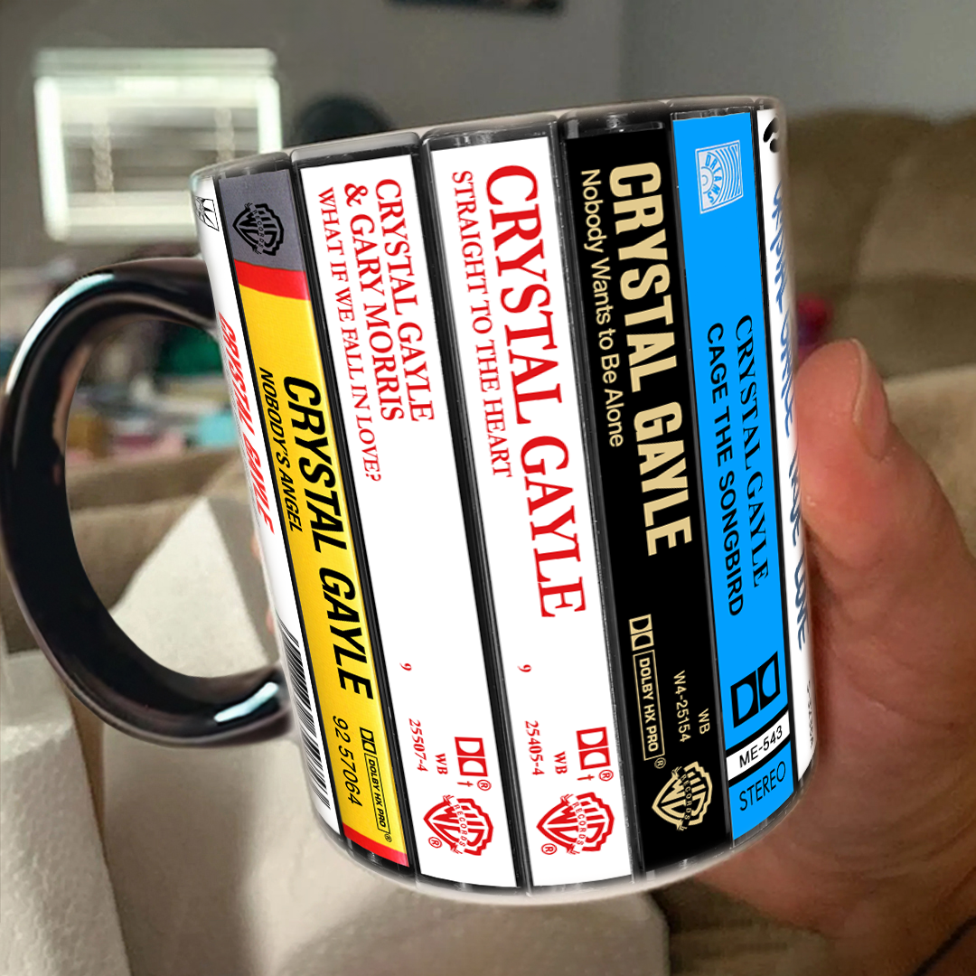 This stylish mug showcases all 14 iconic studio albums by Crystal Gayle, presented in chronological order. From her groundbreaking debut Crystal Gayle to the heartfelt sounds of Somebody Loves You, each album represents a significant milestone in her illustrious career.
