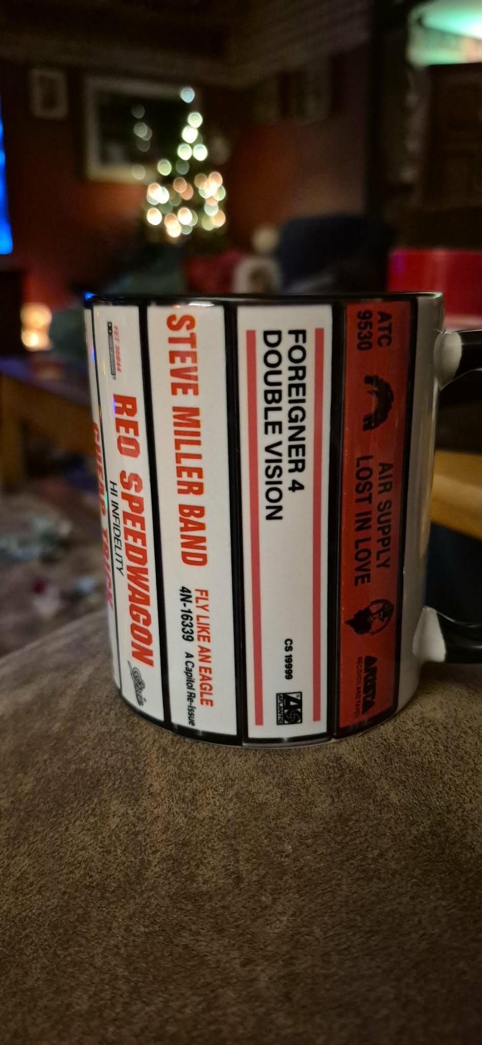I love, love, love this mug that I purchased for my husband. It has cassette titles from all the concerts we've been to, plus one from the artist of "our" song. The only reason I didn't give it 5 stars is that within half hour of placing my order, I sent an email because I had forgotten one big concert we had been to. There was one I had on the mug that was a cover band so I asked to replace that artist with the one we had been to a concert of the actual band. I know it was less than half an hour from the order until I sent the e-mail so there is no way the work had been started on the mug. The e-mail was completely ignored. Not even a "We're so sorry, but once the order has been placed, there are no changes allowed" email. Nothing. Some kind of response (other than the confirmation e-mail for the order) would have been good customer service. It would have been easy to make the correction to my order, but it was my mistake that I didn't get the order correct, but I feel that some kind of acknowledgement of my e-mail would have been appropriate for good customer service.