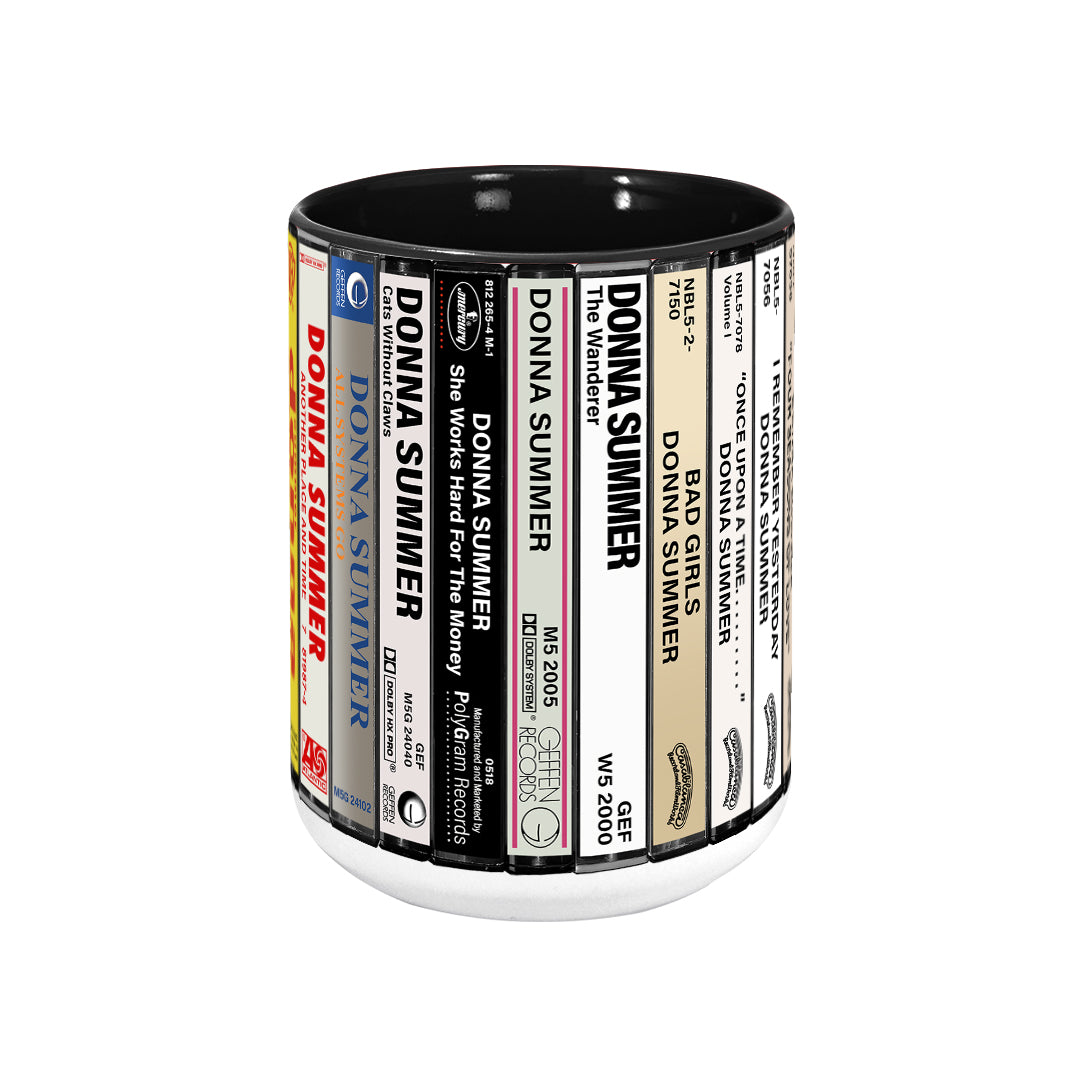 Discover the perfect addition to your retro music collection with our Donna Summer Albums Cassette Retro Collection Accent Mug!