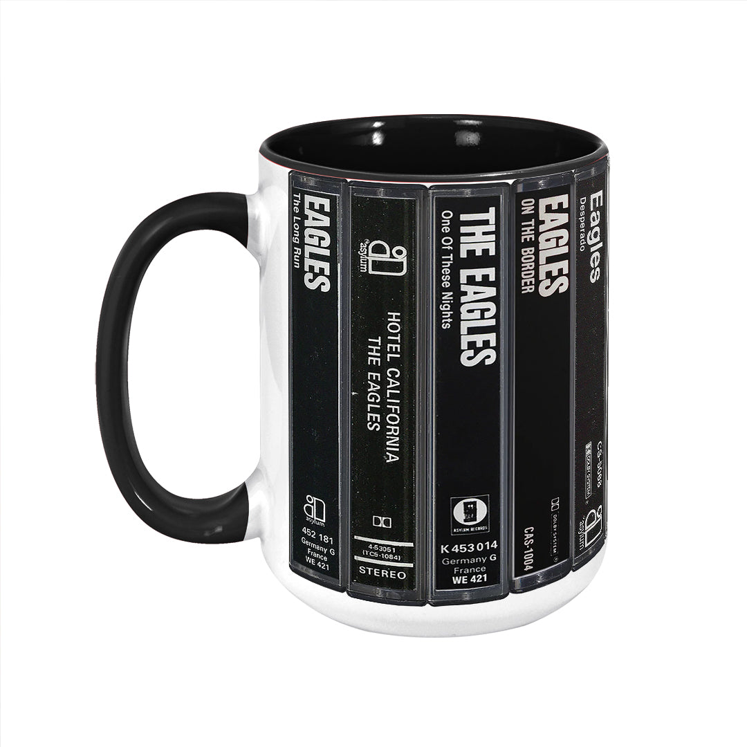 Introducing the Eagles Albums Cassette Retro Collection Accent Mug. This mug features a unique design inspired by the iconic albums of the Eagles. Made from durable materials, this mug is perfect for enjoying your favorite hot beverages while showcasing your love for the band. A must-have for any Eagles fan and a great addition to your mug collection.