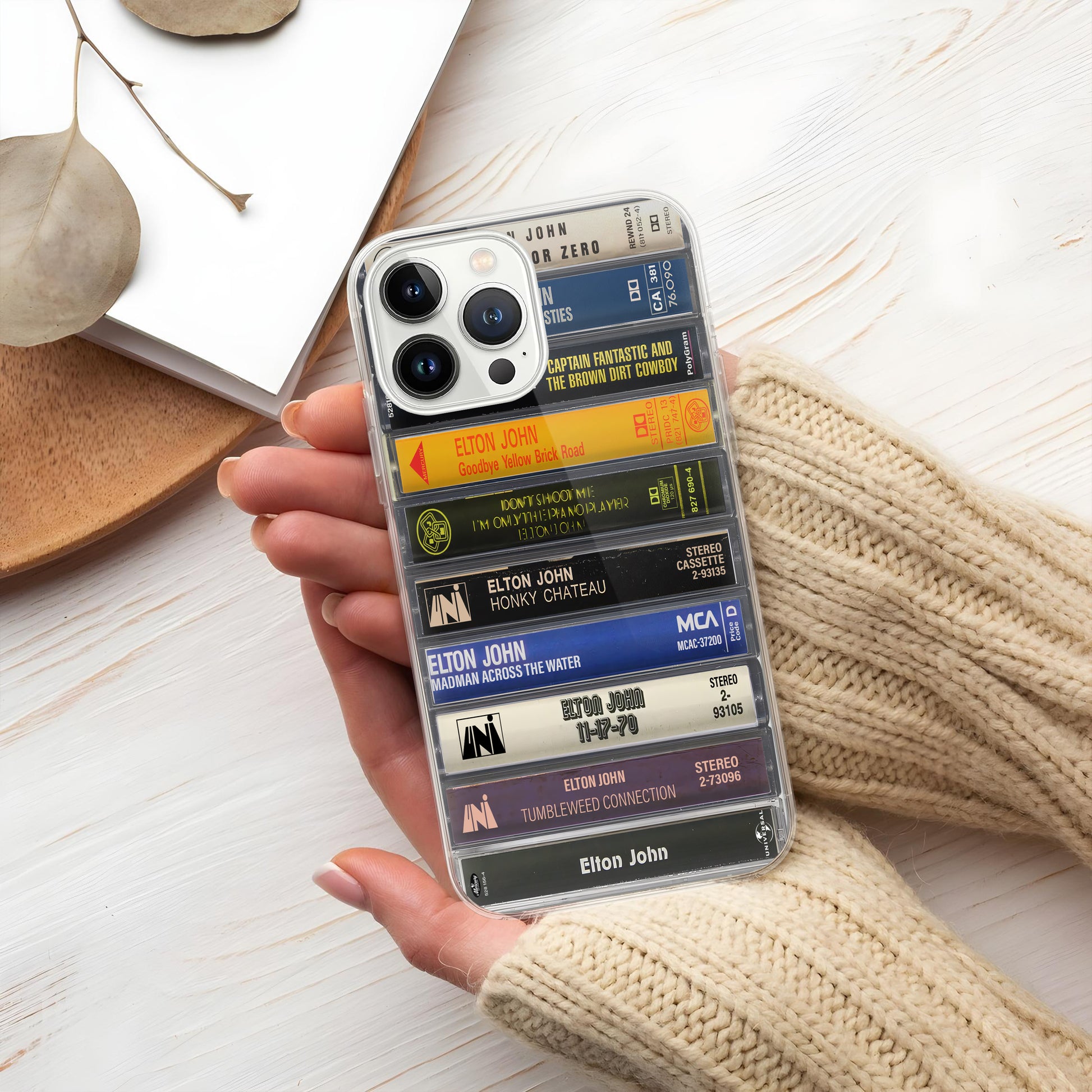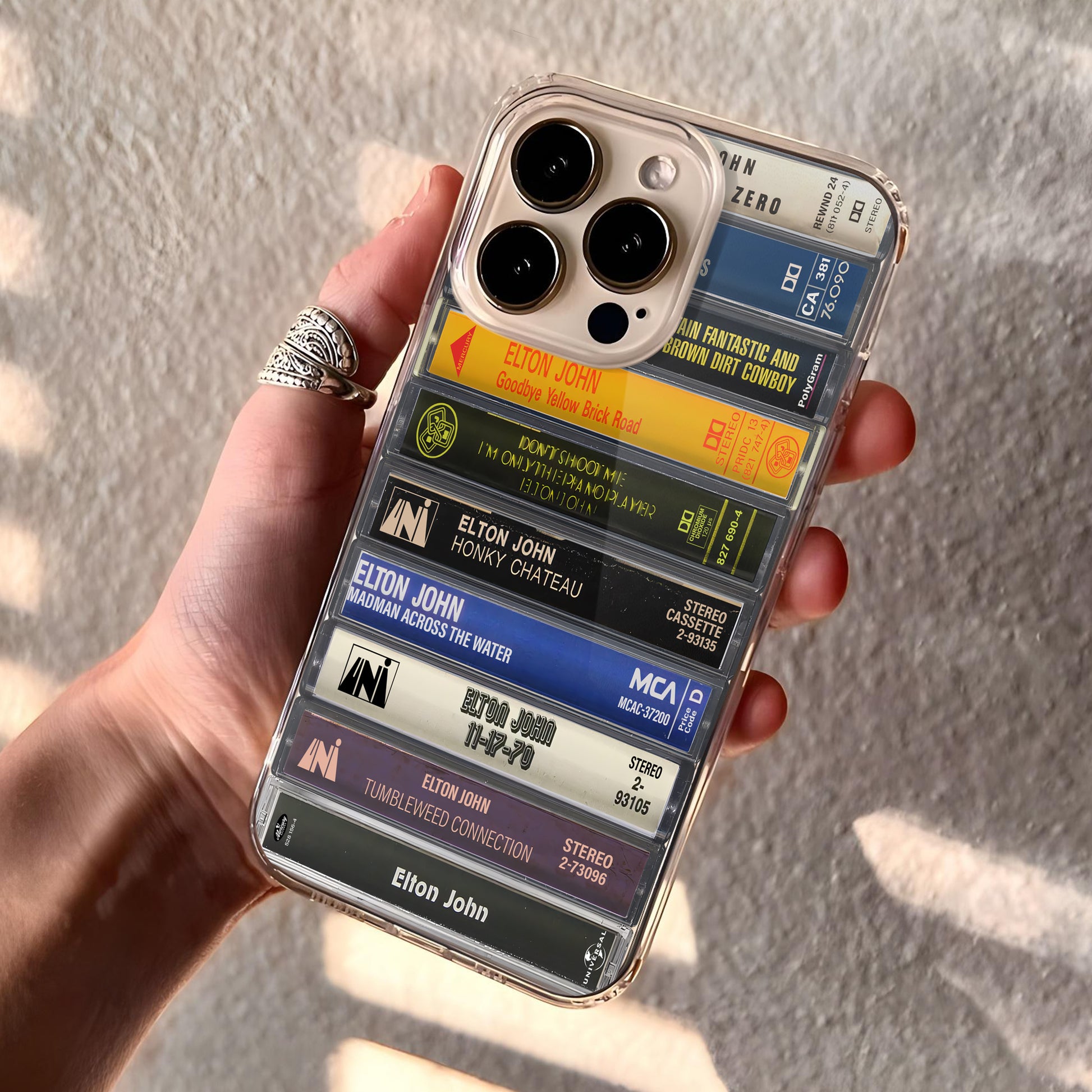 Show off your love for Elton John with our retro phone case featuring his iconic album cassette collection. Made with durable materials, it provides both style and protection for your phone. A must-have for any fan or music lover.