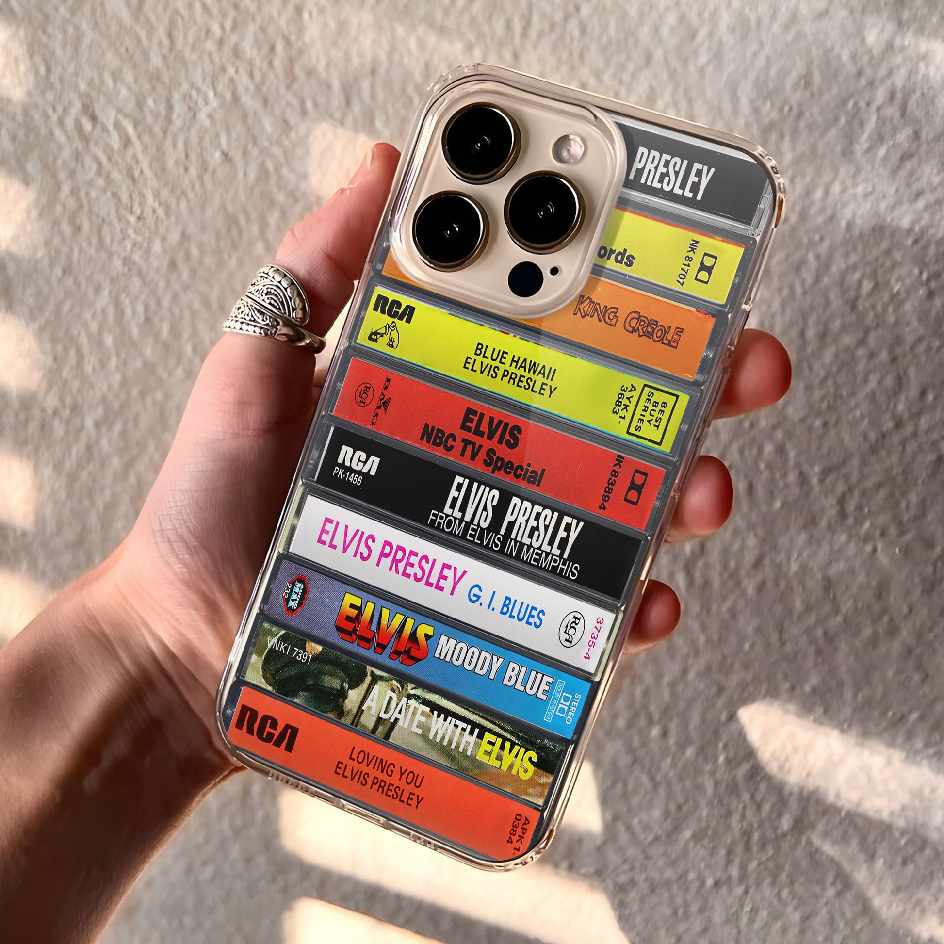 Introducing the Elvis Presley Albums Cassette Collection Retro Phone Case. Keep your phone protected in style with this unique case featuring iconic Elvis Presley albums. Made from high-quality materials, it offers both style and durability. A must-have for any Elvis fan!