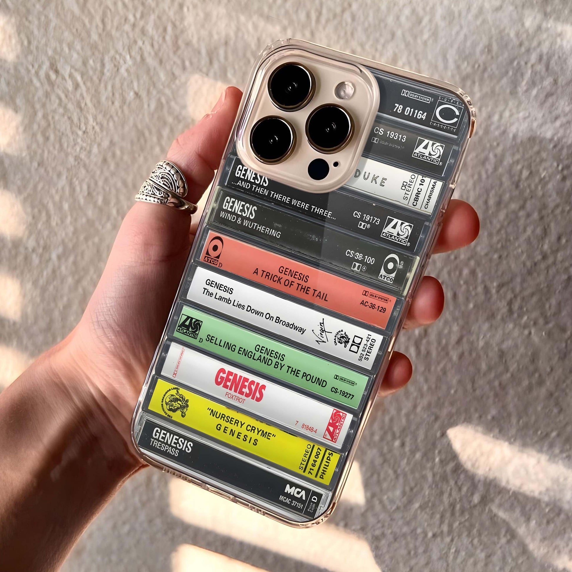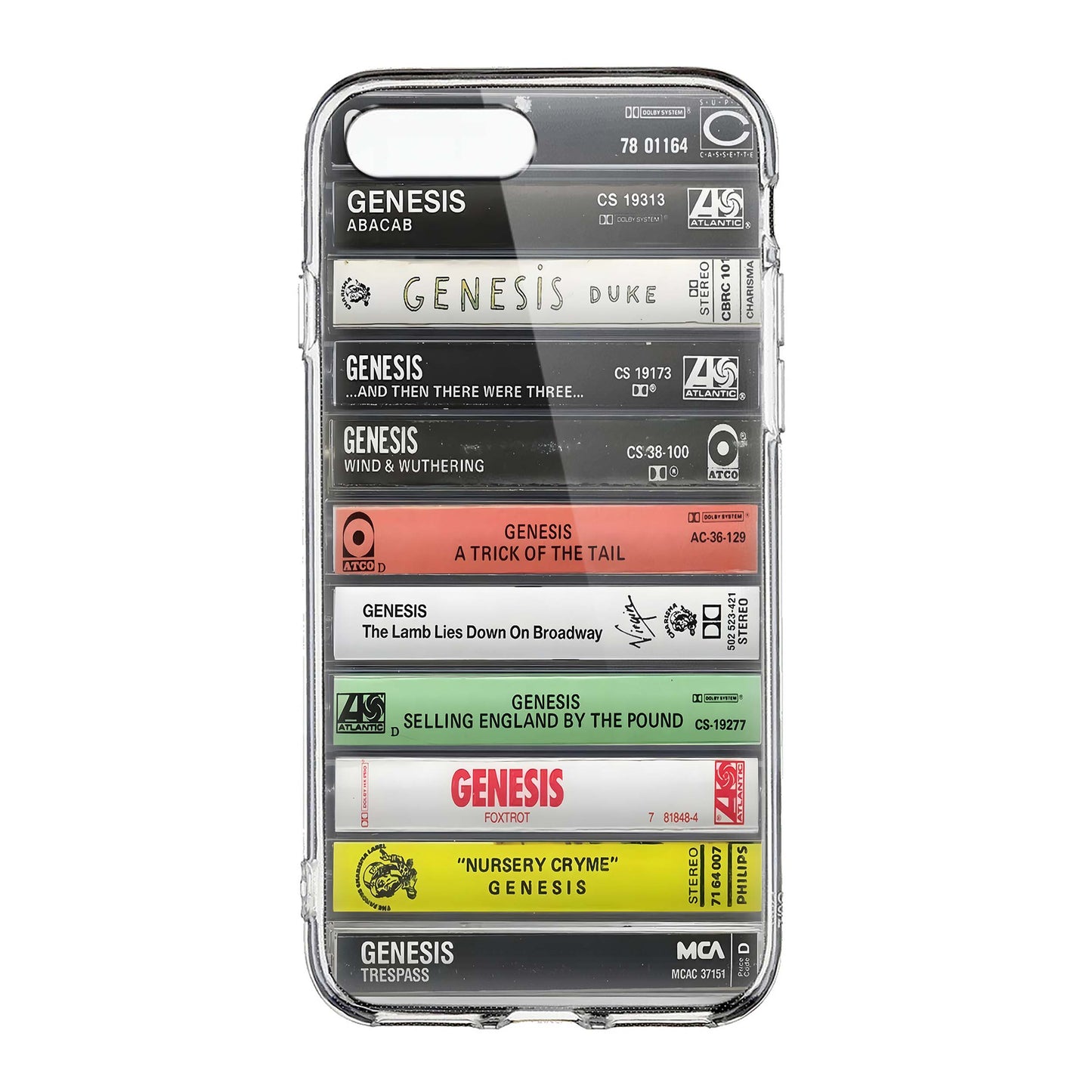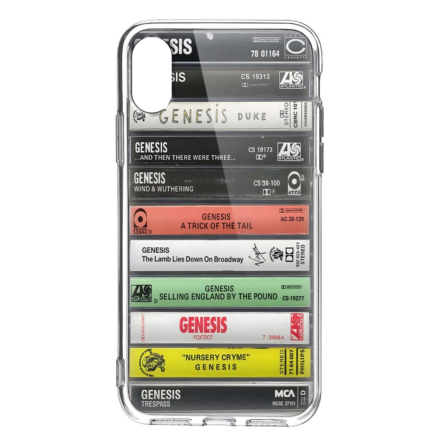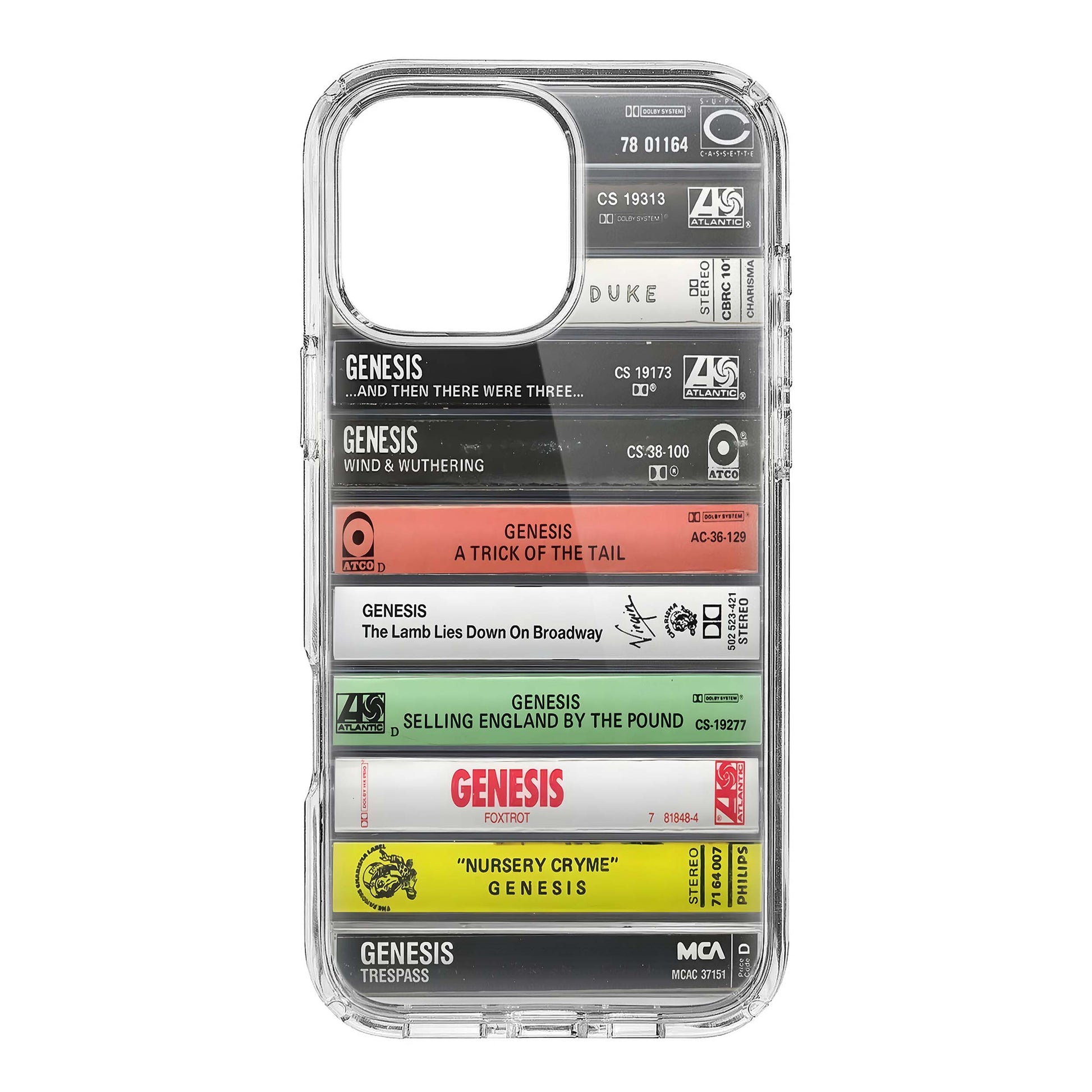 Introducing the Genesis Albums Cassette Collection Retro Phone Case. Relive the nostalgia of the 80s with this stylish and functional phone case. Made with high-quality materials, it provides maximum protection for your phone while also showcasing your love for the iconic band, Genesis. Perfect for any music enthusiast.