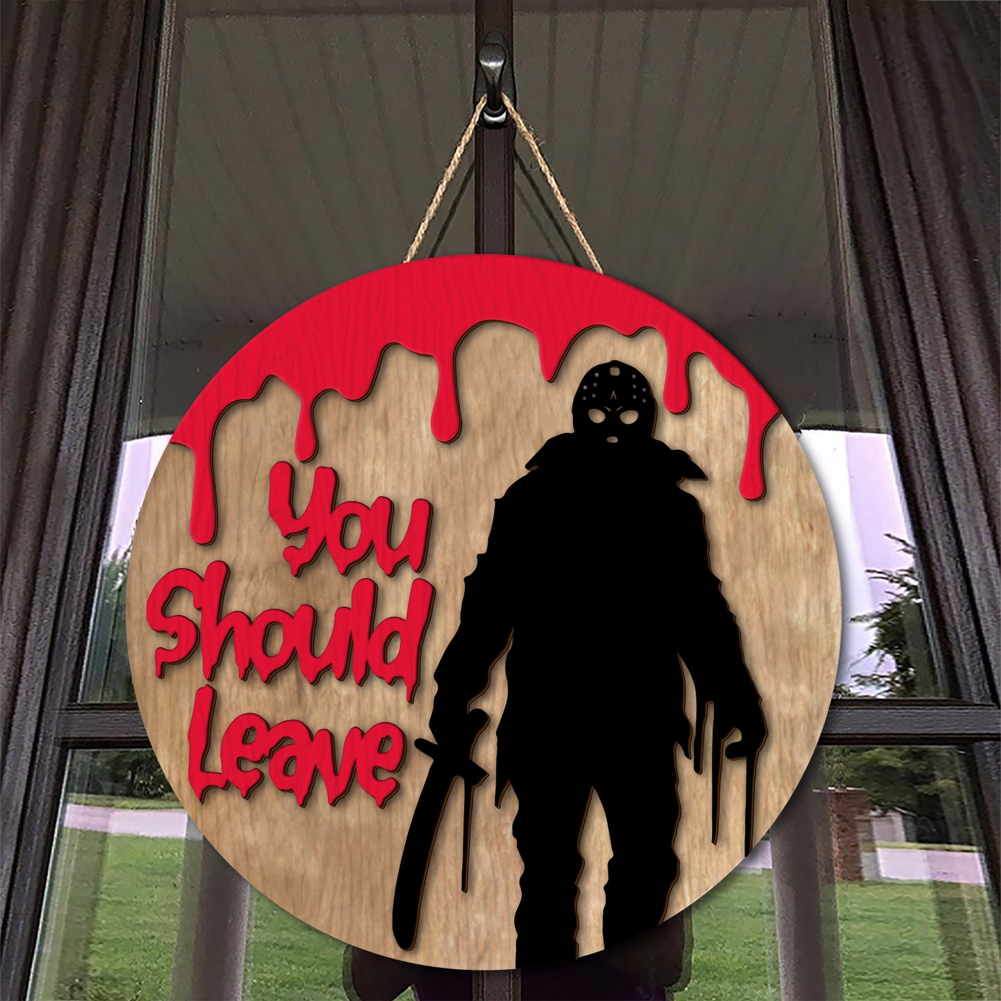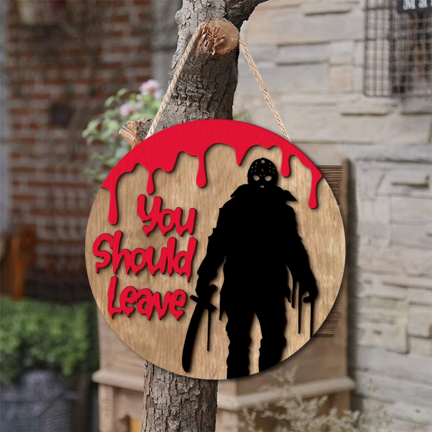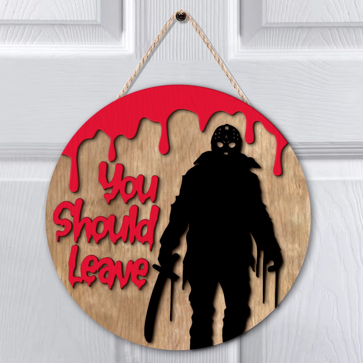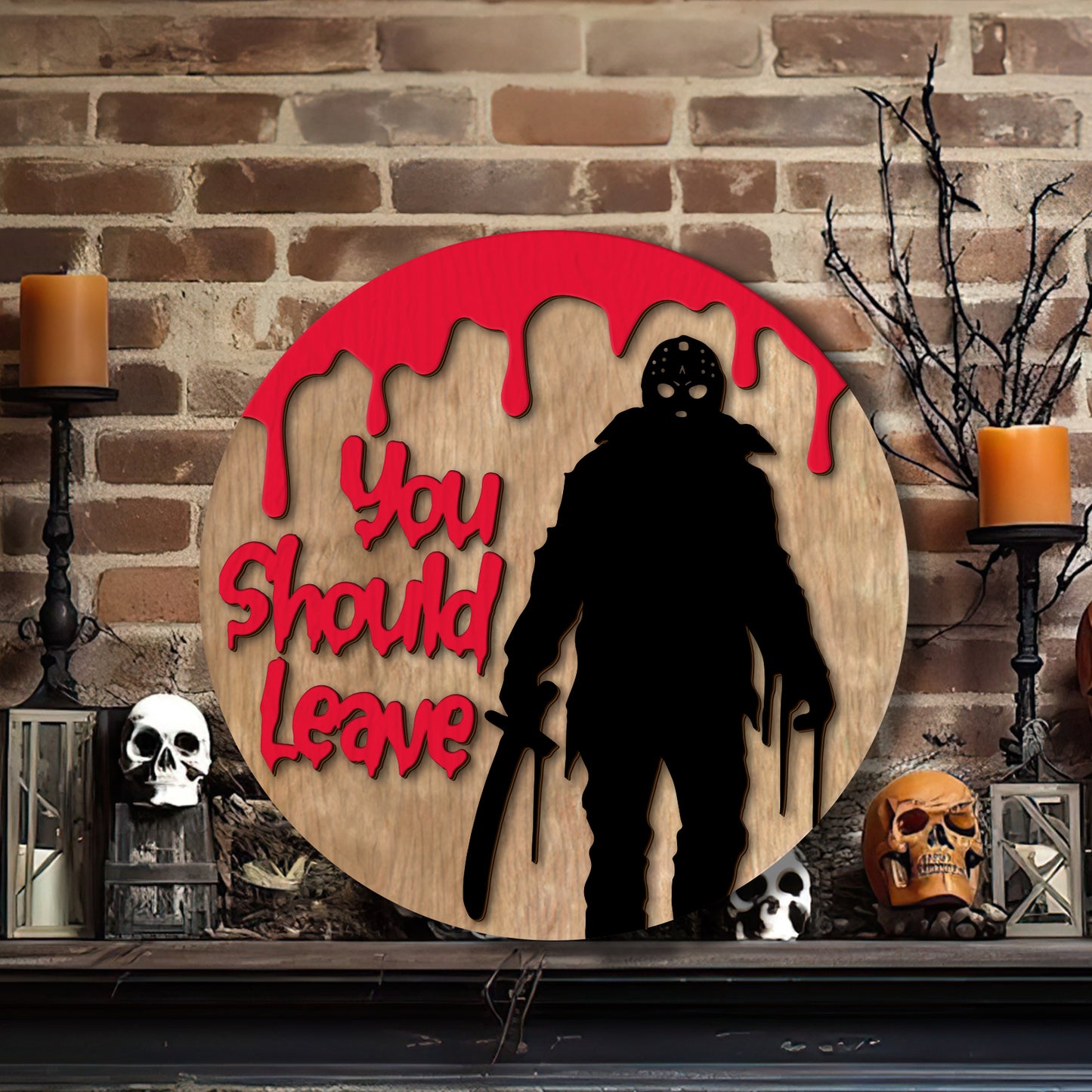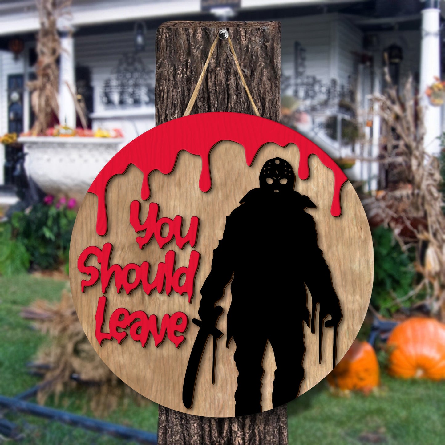 Enhance your home's spooky decor with the You Should Run Custom Horror Character 2 Layered Door Hanger Sign. This high-quality, layered sign features custom horror characters, adding a unique touch to your Halloween theme. Made with durable materials, it will last for years to come. Scare your guests and trick-or-treaters with this must-have Halloween decoration.