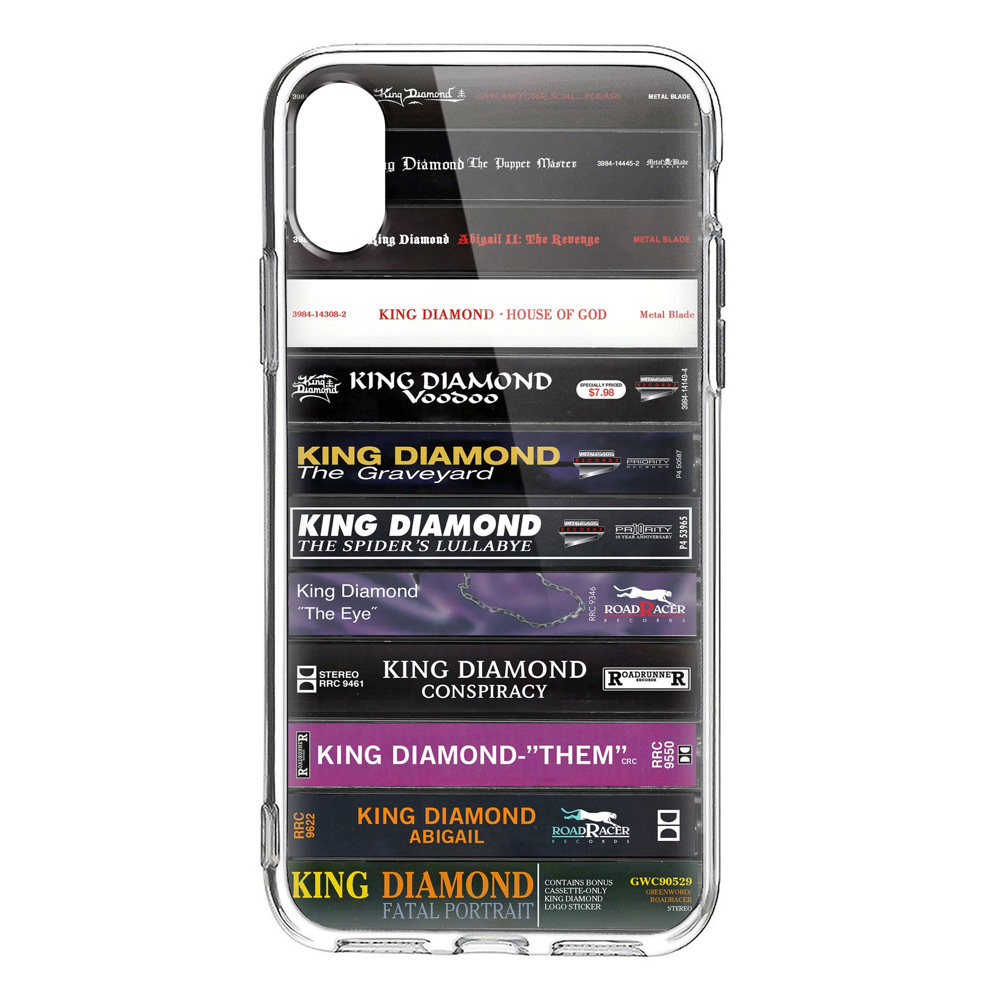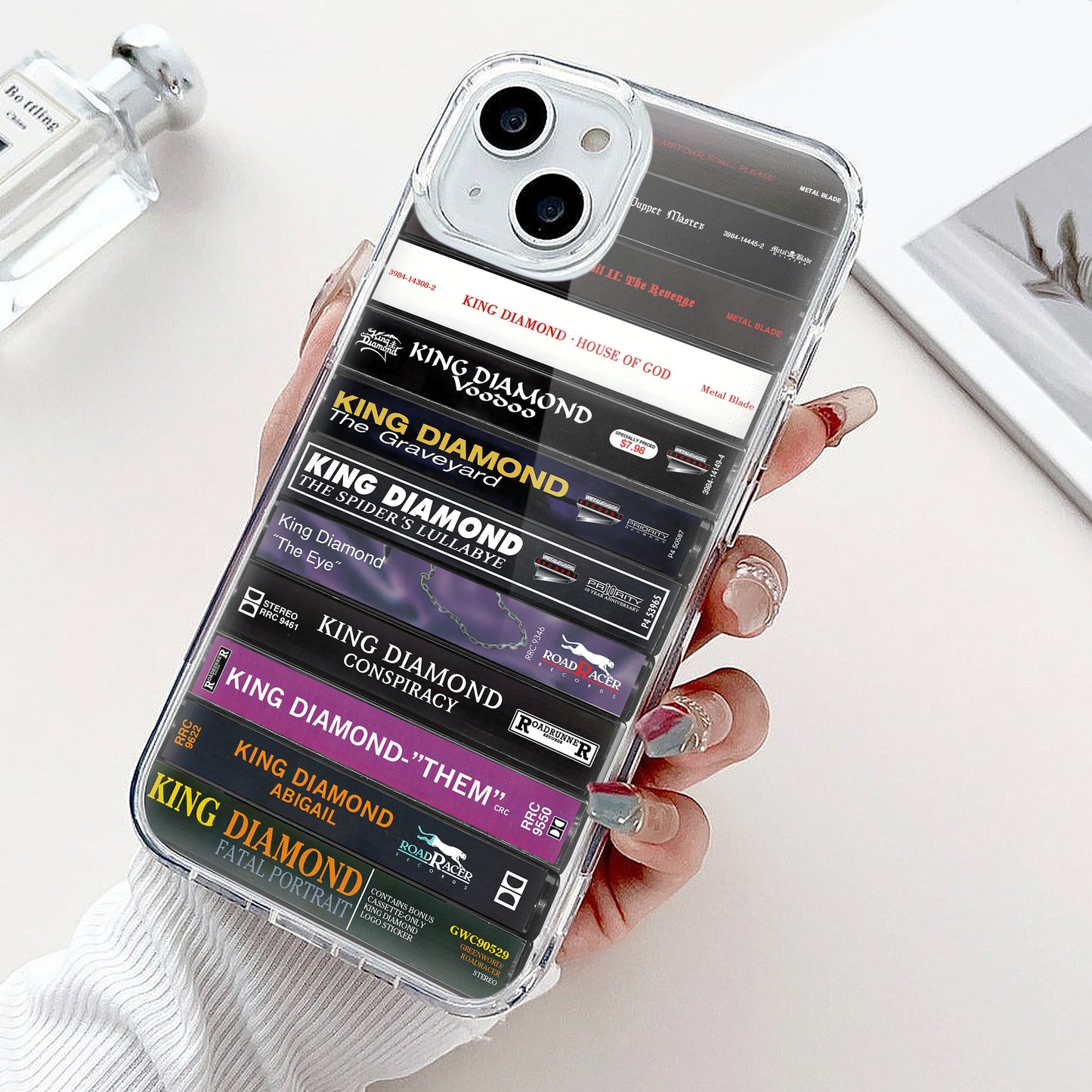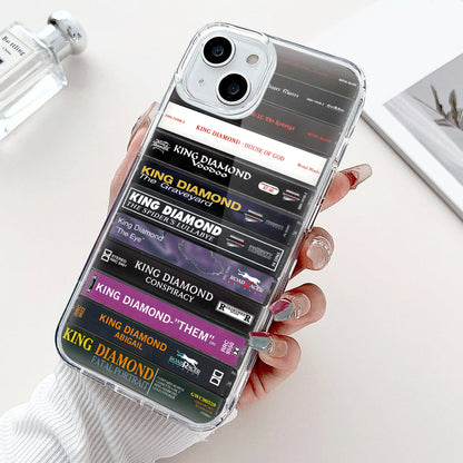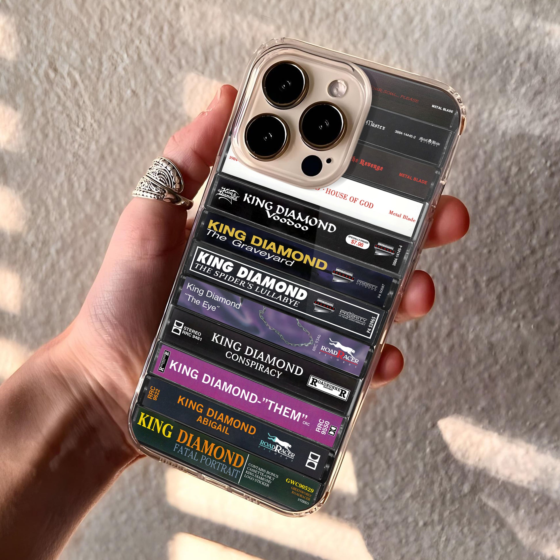 Keep your phone protected with King Diamond Albums Cassette Collection Retro Phone Case. This stylish case showcases a vintage design inspired by the legendary band's iconic albums, seamlessly blending punk rock aesthetics with modern functionality.
