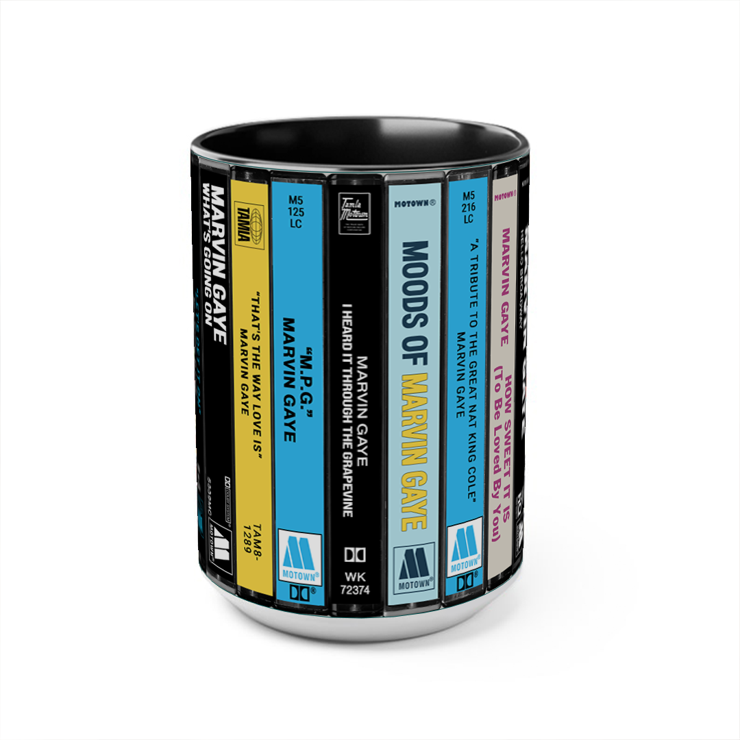 Marvin Gaye Albums Cassette Collection Retro Accent Edge-to-Edge Printed Mug