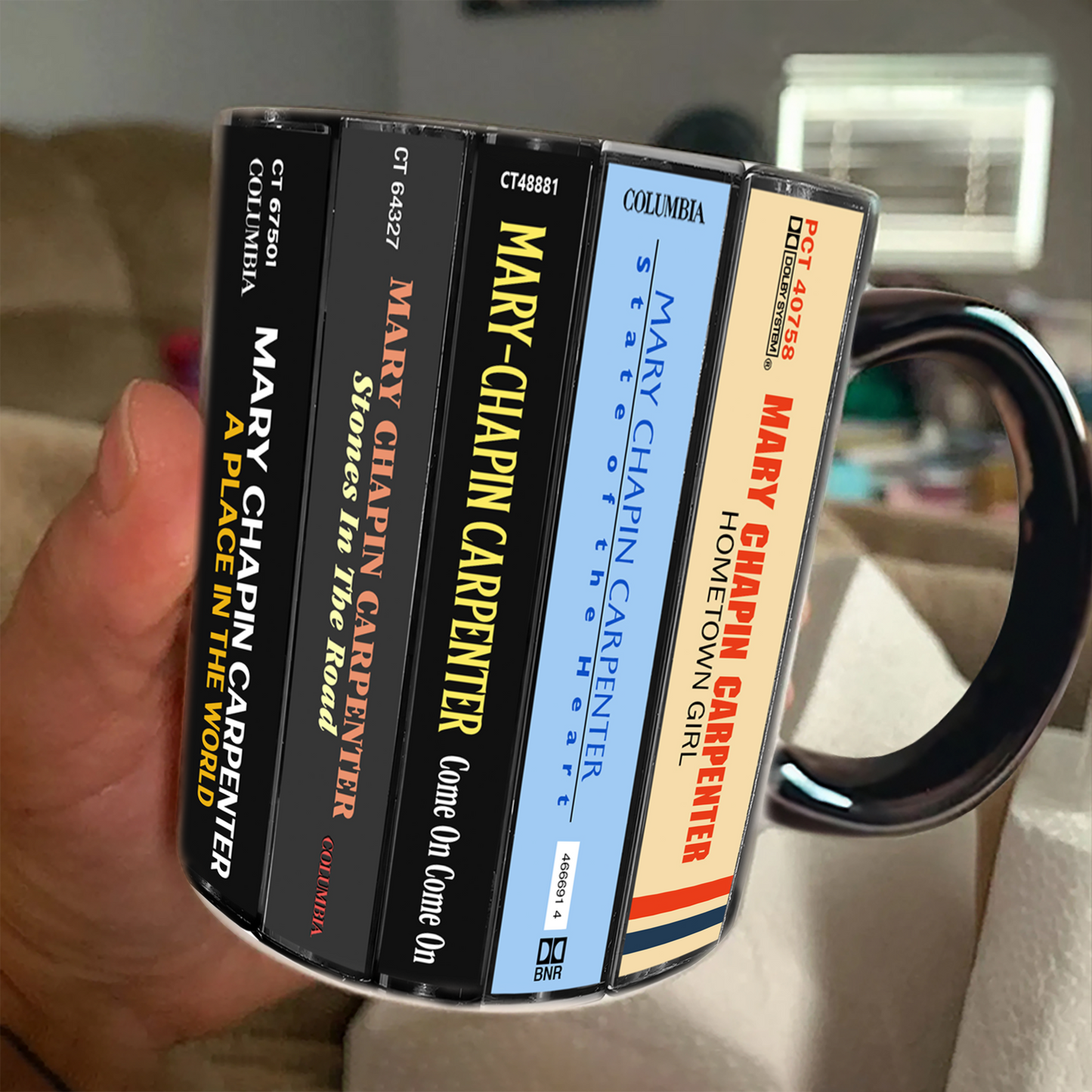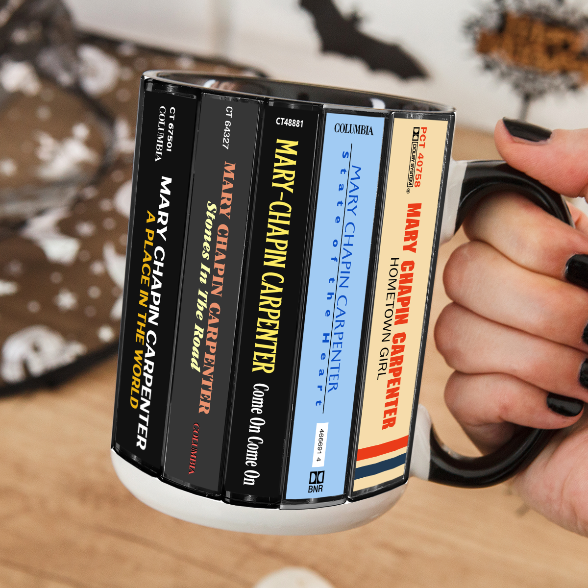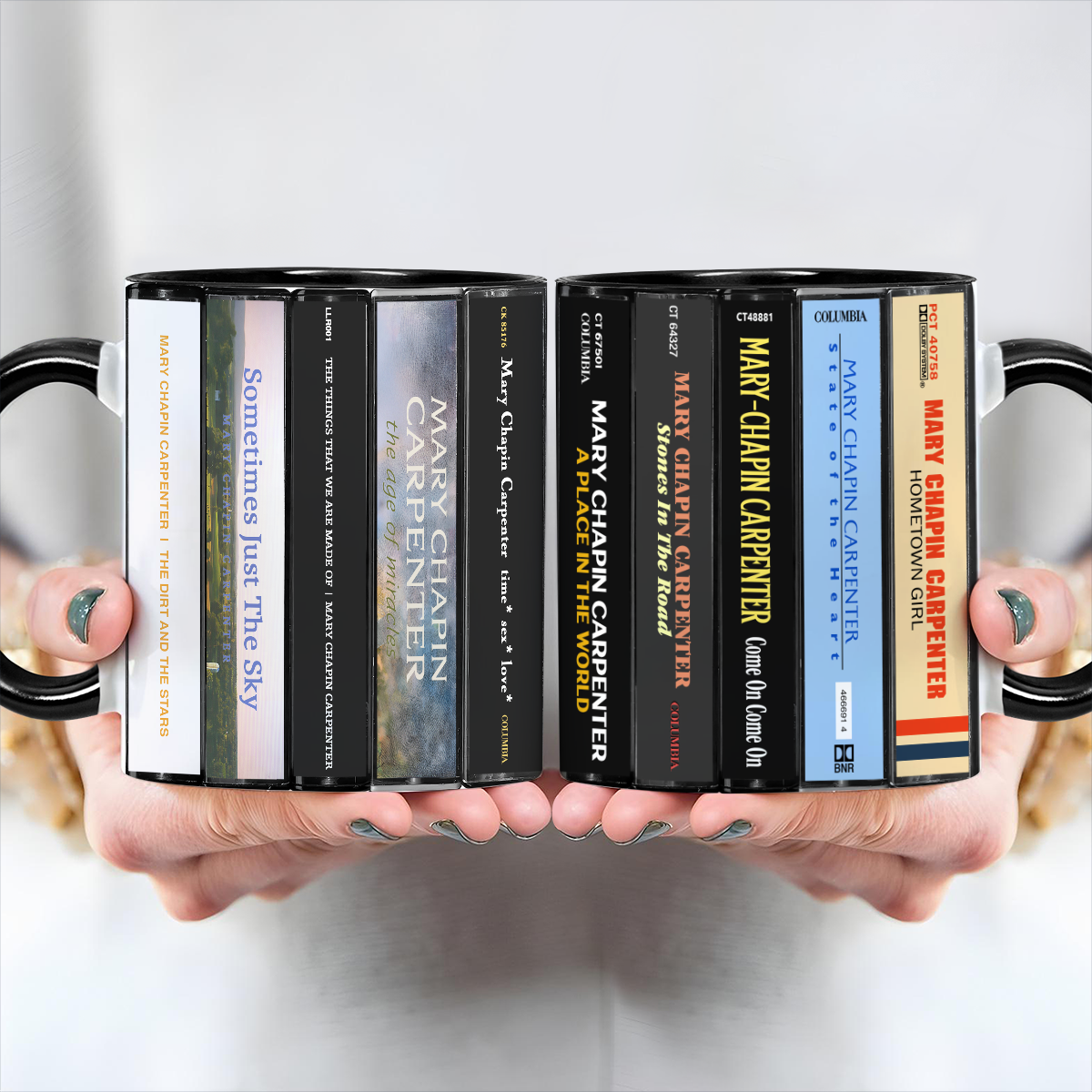Mary Chapin Carpenter Albums Cassette Collection Retro Accent Edge-to-Edge Printed Mug