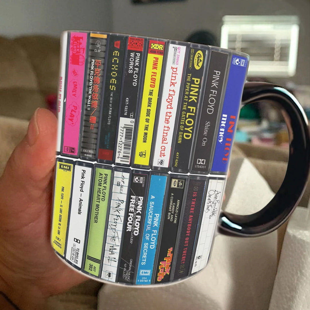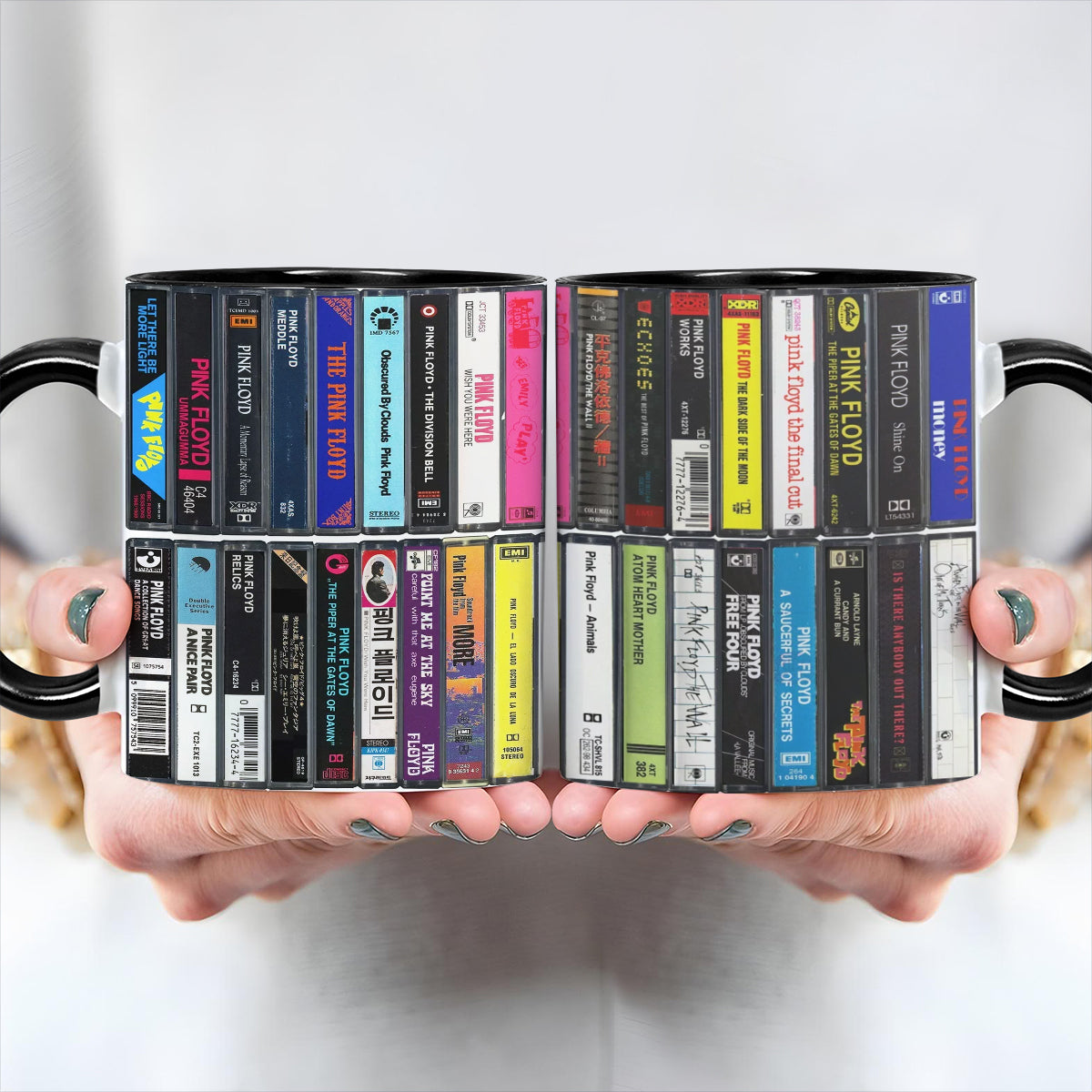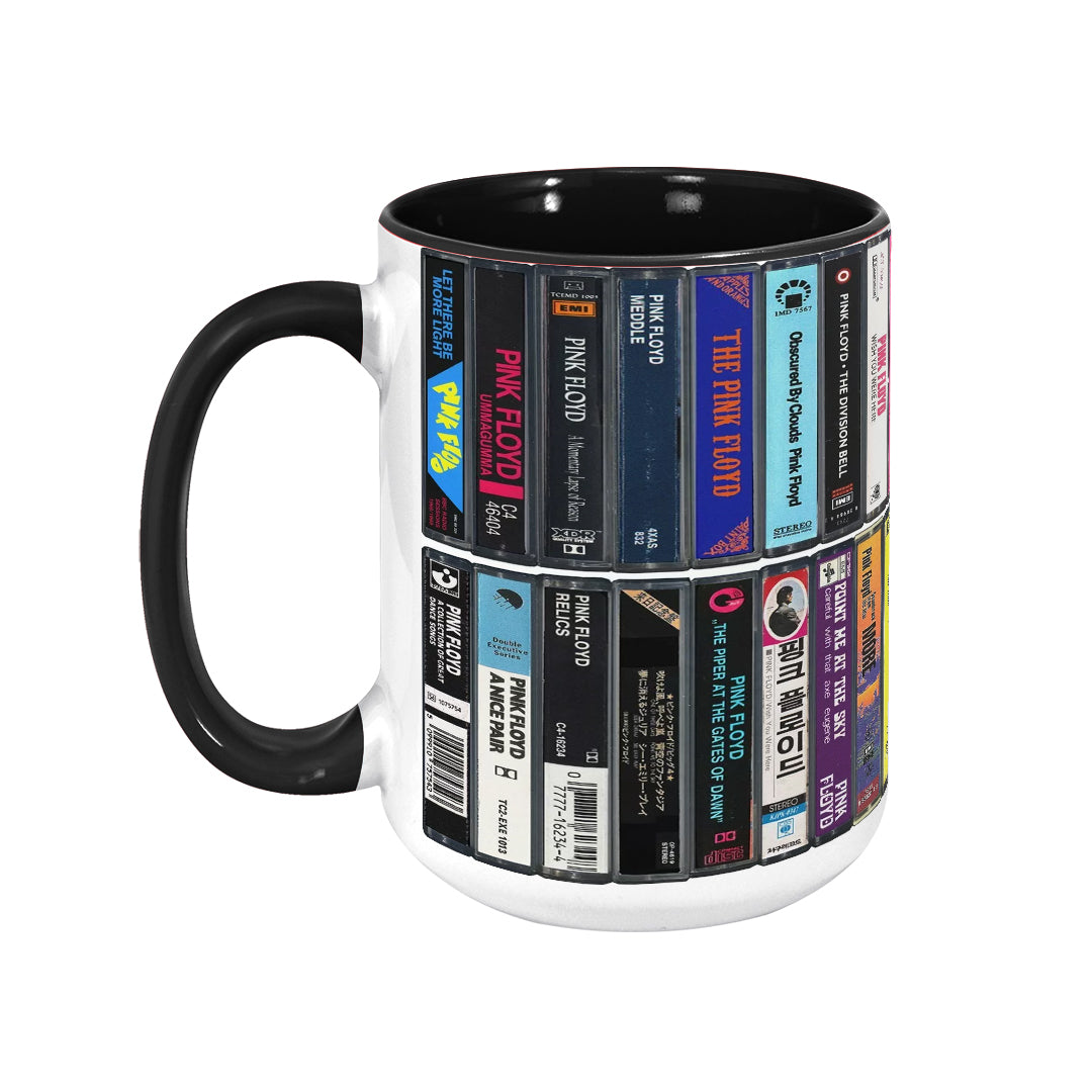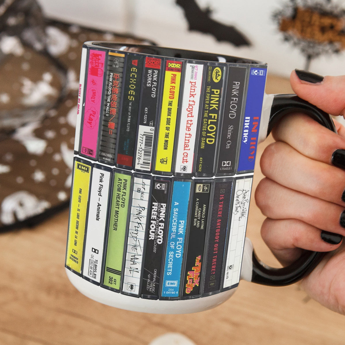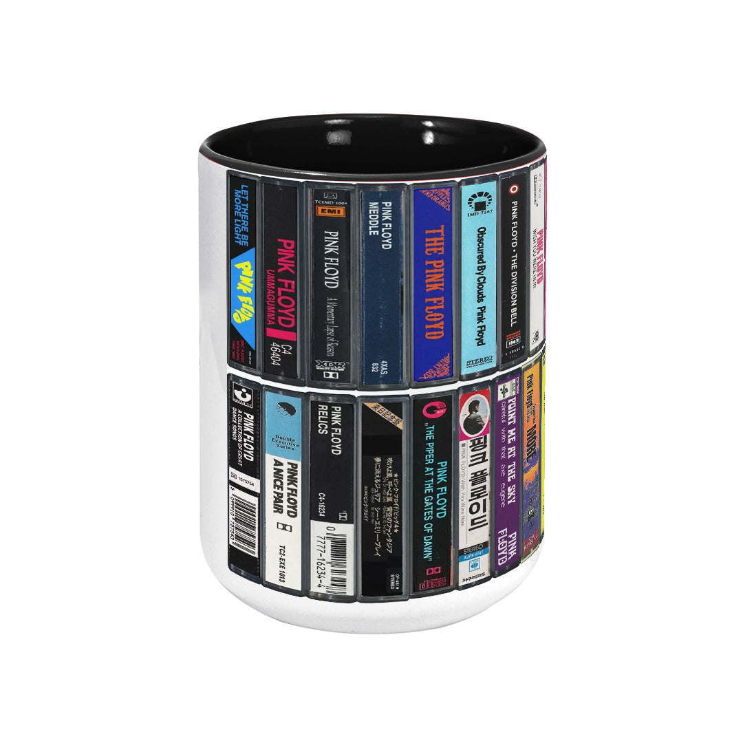 Our Cassette Accent Mug celebrating the discography of Pink Floyd - Featuring 34 of the band's releases including albums, singles and other assorted rarities in their original cassette format