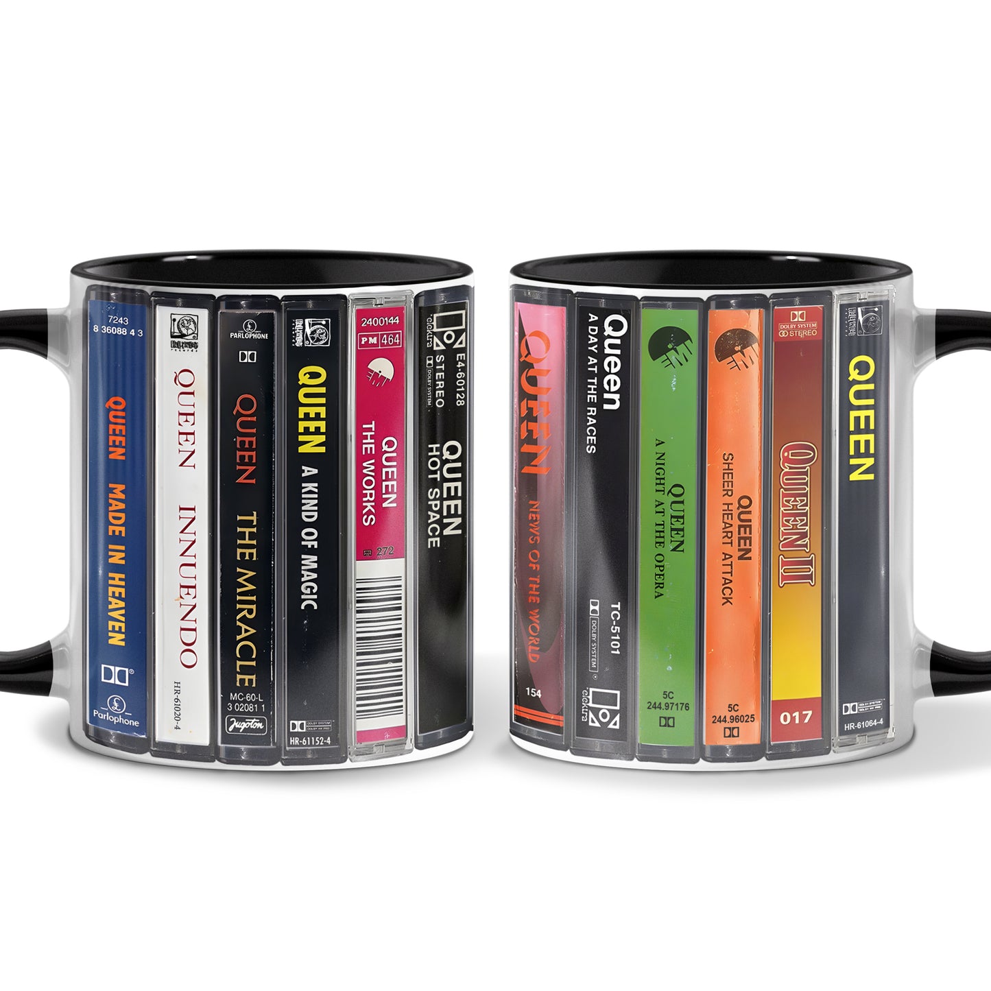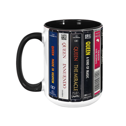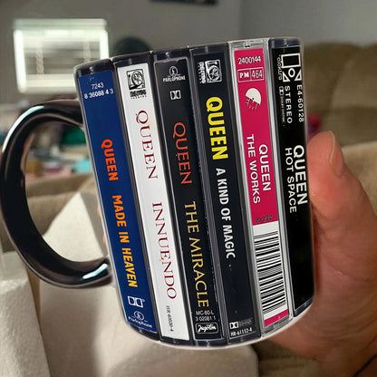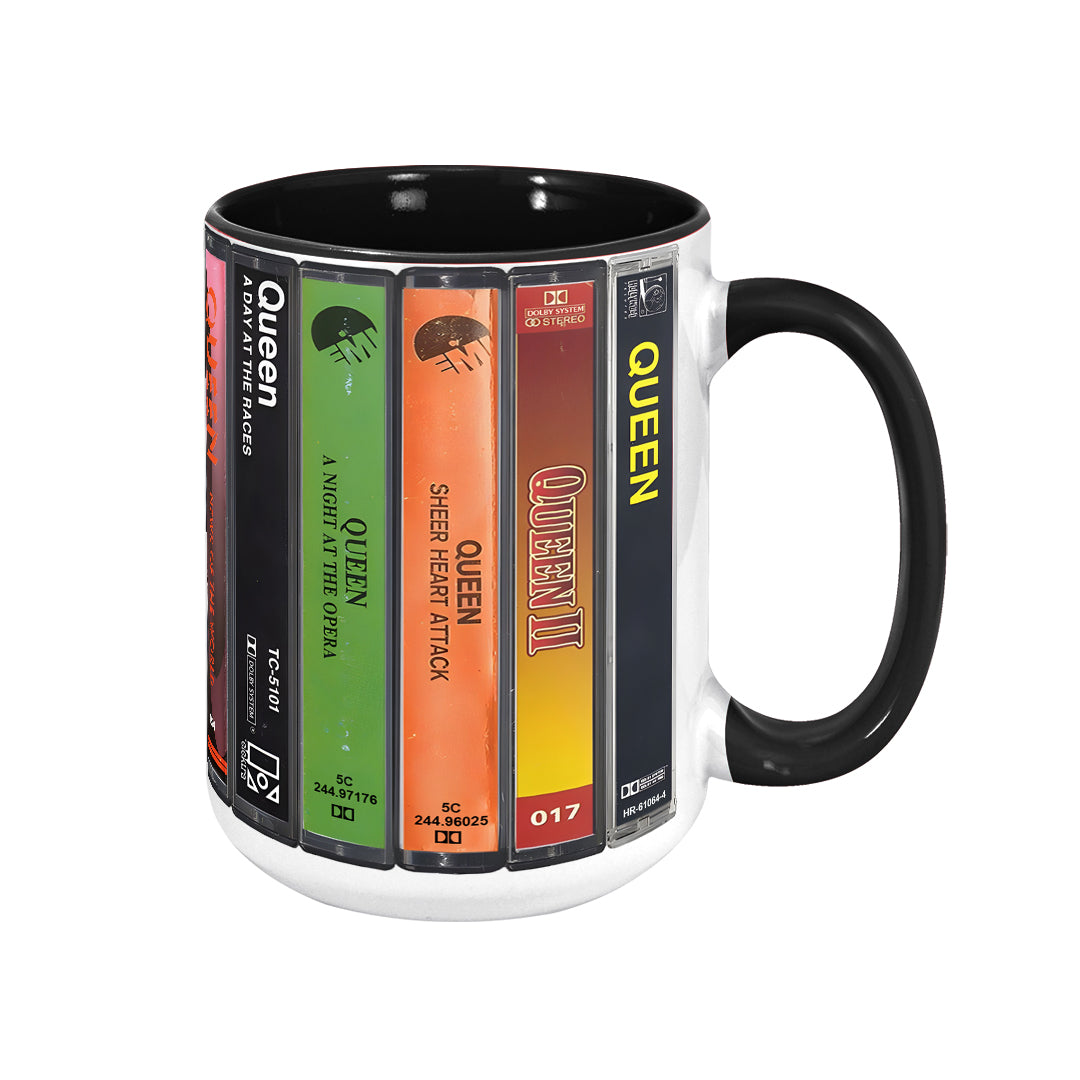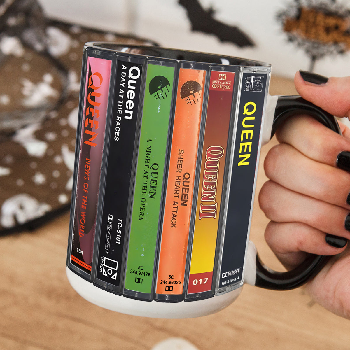 Indulge in a nostalgic and unique drinking experience with our Queen Albums Cassette Retro Collection Accent Mug. Featuring iconic album covers in a vintage cassette design, this mug is a must-have for any Queen fan. Made of durable ceramic, it's perfect for hot or cold beverages. Add to your collection today!