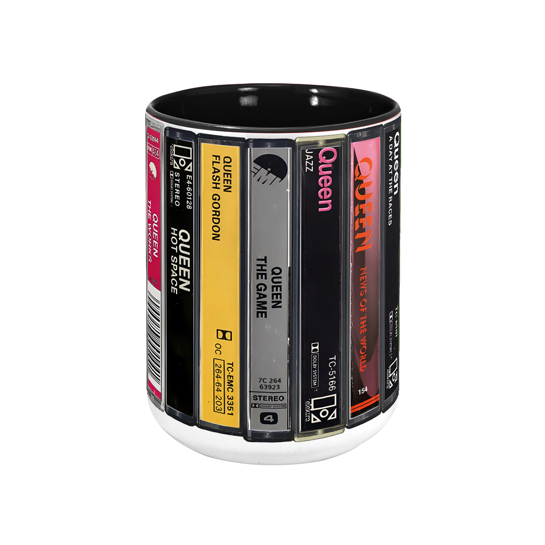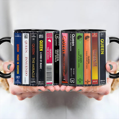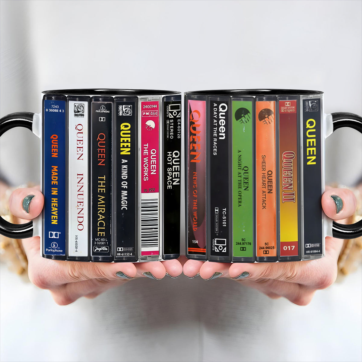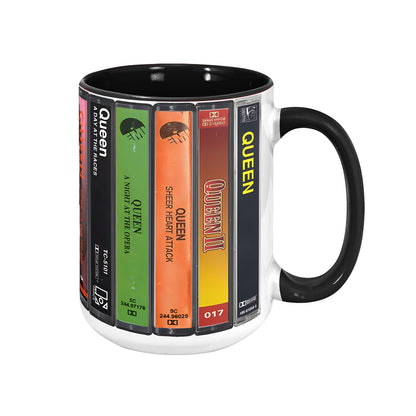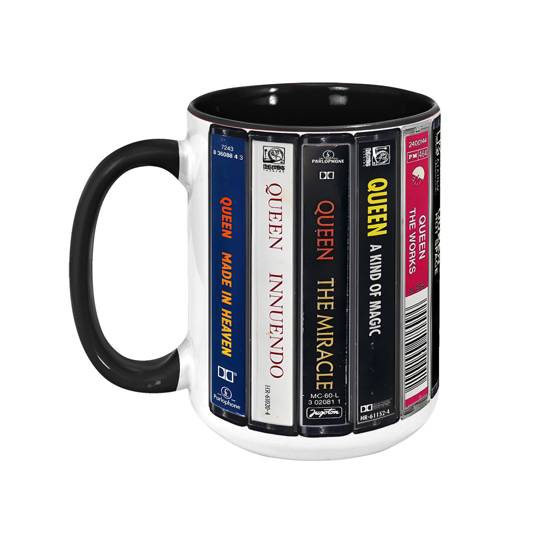 Indulge in a nostalgic and unique drinking experience with our Queen Albums Cassette Retro Collection Accent Mug. Featuring iconic album covers in a vintage cassette design, this mug is a must-have for any Queen fan. Made of durable ceramic, it's perfect for hot or cold beverages. Add to your collection today!