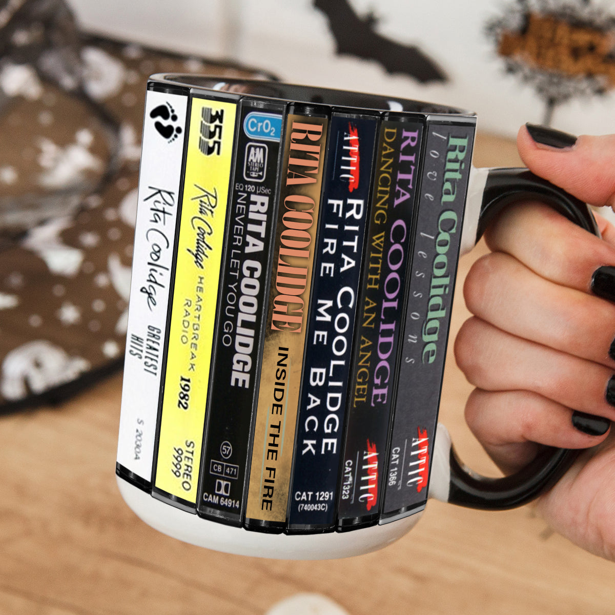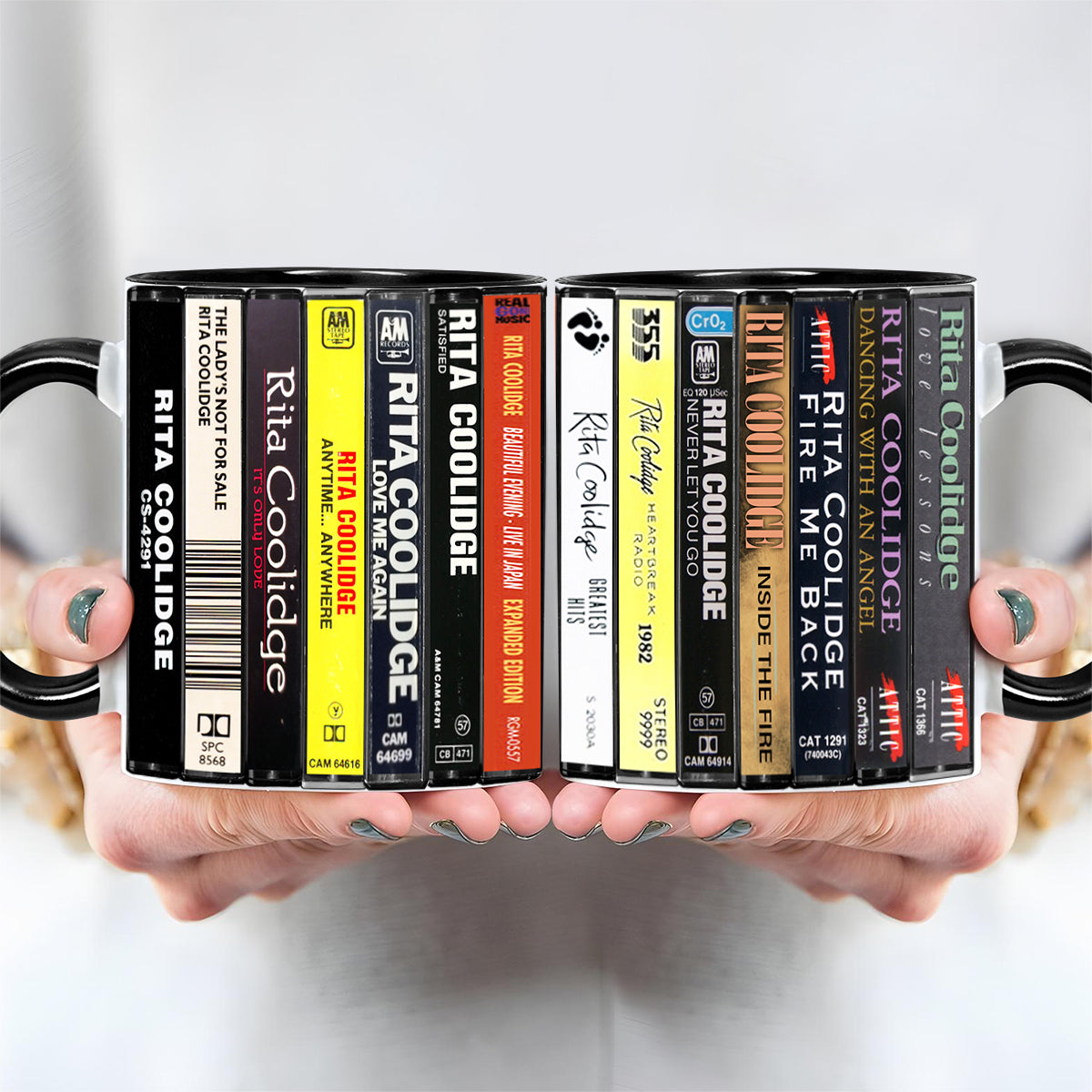 Rita Coolidge Albums Cassette Collection Retro Accent Edge-to-Edge Printed Mug