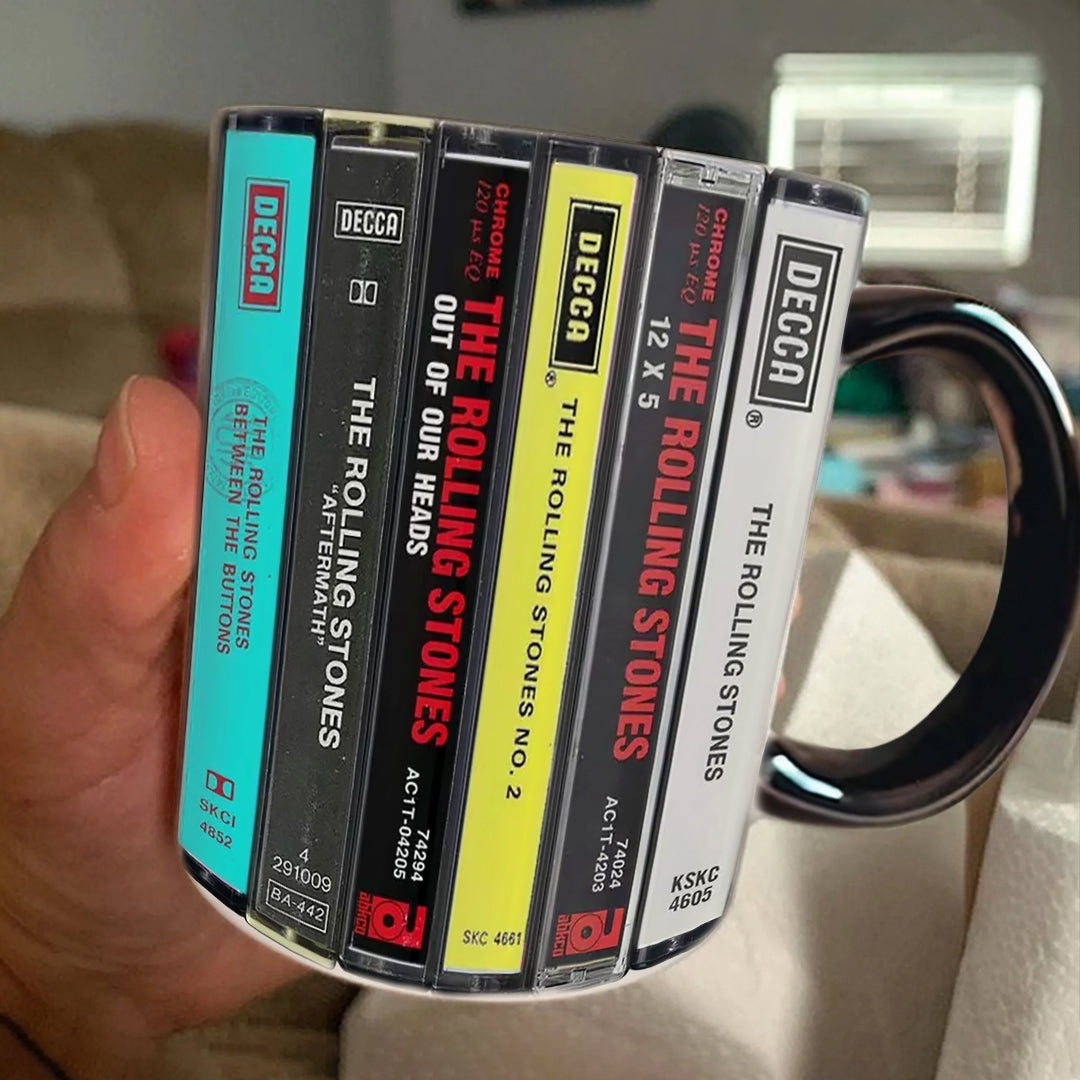 This Rolling Stones Albums Cassette Retro Collection Accent Mug features the band's first 12 albums in their original cassette format, celebrating some of their best work. With a unique cassette print, it's a must-have for any fan or music lover looking to add a touch of retro charm to their collection.