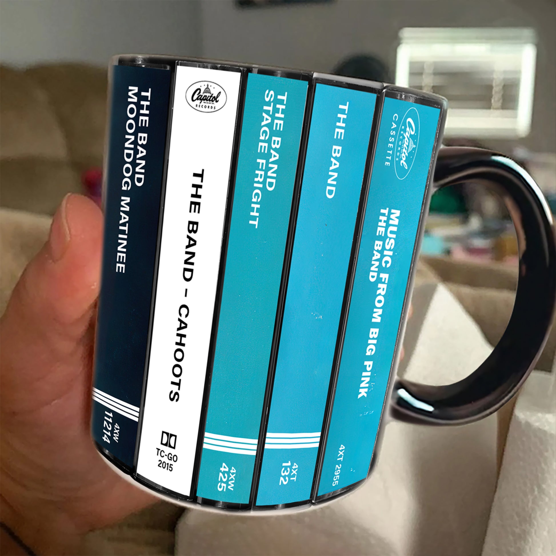 Featuring 10 of The Band's most celebrated albums, this design highlights their unique blend of folk rock and Americana influences. Sip your coffee or tea in style while appreciating the bold typography and vibrant colors that reflect the essence of The Band's artistry.